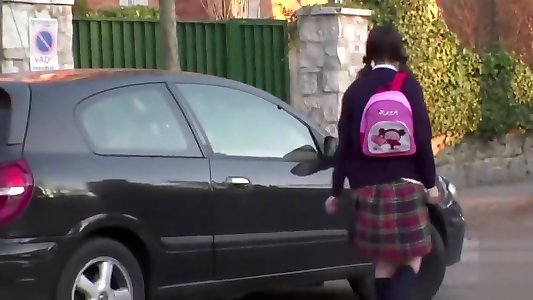 young college damsel lolly lips in milky tights asks to drive her to college