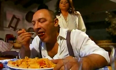 Japanese skank plays with a salami and gets humped in all known positions