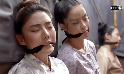 zniewolone japońskie dziewczyny przywiązane i zawieszone od sufitu