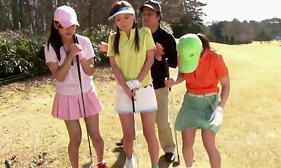 Smart Japanese ladies mix their hobbies - Golf and fucking