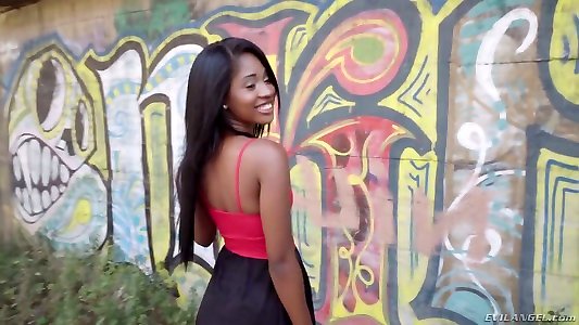 超级热辣的没有经验的黑暗色调的青少年脱去她的学校仙女的衣服,露出一个令人印象深刻的bod