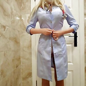 医院厕所里的护士自慰,并在手机上为她的订阅者制作视频