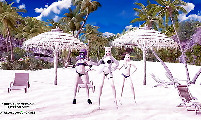 Awesome Threesome at the Beach with Two Spectacular Chinese AV Models