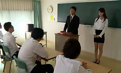 Sexy Japanese teacher in action in the class
